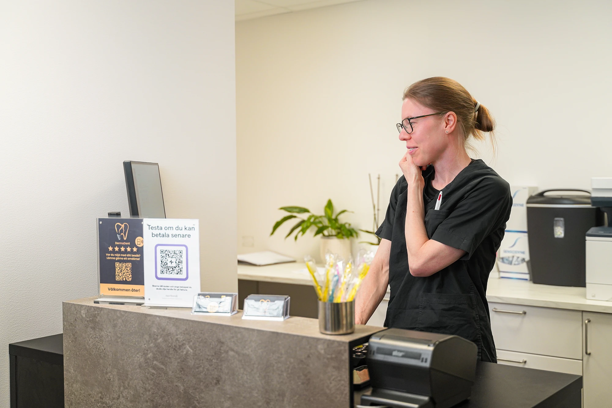 Vår tandhygienist tar hand om din munhälsa genom noggranna rengöringar och behandlingar för att förebygga karies och andra tandproblem. Genom regelbundna besök hos vår tandhygienist kan du bevara en strålande leende och förebygga besvären innan de uppstår.